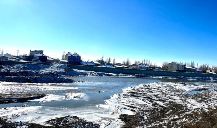 Kış mevsiminin en sert geçtiği illerin başında gelen Ağrı’da bir süre önce etkili olan kar yağışının ardından meydana gelen soğuklar etkisini göstermeye devam ediyor. Birçok ev ve iş yerlerinin çatılarında buz sarkıtları oluşurken kent merkezinden geçen Murat Nehri’nin yüzeyi de buz tuttu. Bazı araçların camları ise buz tuttu.