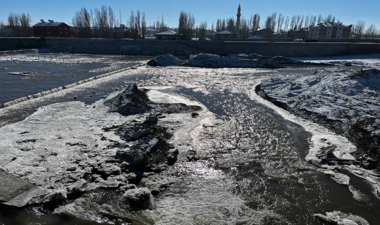 Kış mevsiminin en sert geçtiği illerin başında gelen Ağrı’da bir süre önce etkili olan kar yağışının ardından meydana gelen soğuklar etkisini göstermeye devam ediyor. Yeniden beyaza bürünen kentte, birçok ev ve iş yerlerinin çatılarında buz sarkıtları oluşurken kent merkezinden geçen Murat Nehri’nin yüzeyi de buz tuttu. Bazı araçların camları ise buz tuttu.