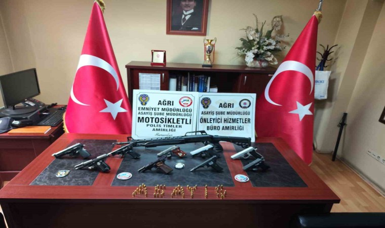 Ağrı’da asayiş ekiplerinin düzenlediği şok uygulamada ruhsatsız 1 adet yivsiz otomatik tüfek, 111 adet fişek ve 2 adet kurusıkı tabanca ele geçirildi.