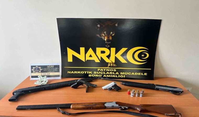 Ağrı İl Emniyet Müdürlüğü Narkotik Suçlarla Mücadele Şube Müdürlüğünce, "Sokak Satıcılarının Yakalanmasına" yönelik devam eden çalışmalar sonucunda tespit edilen 16 sokak satıcısının yakalanması amacıyla 162 personel, 6 özel harekat ekibi ve 2 narkotik köpeğiyle 21 adrese eş zamanlı operasyon düzenlendi. Düzenlenen operasyonda 6,14 gram esrar, 72,45 gram metamfetamin, 11 adet sentetik ecza, 3 adet tüfek, 3 adet tabanca ve 5 adet uyuşturucu içiminde kullanılan (Payp) aparat ele geçirildi.