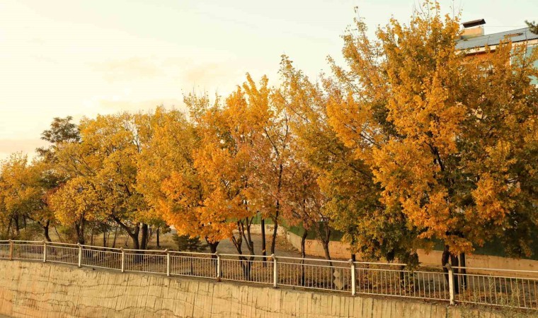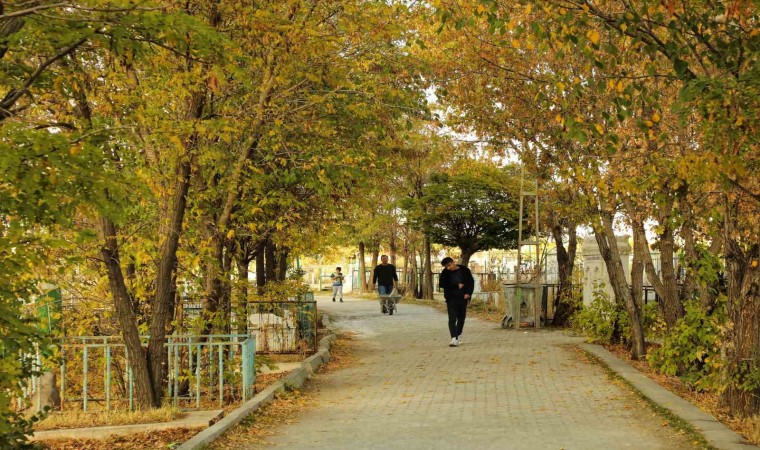 Ağrı’nın il merkezi ve şehir mezarlığı, sonbaharın rengarenk görüntüsüyle göz kamaştırıyor. Yeşil, sarı ve kahverengi tonlardaki ağaçların yaprakları, adeta renk cümbüşü oluşturuyor. Güneşle birlikte altın sarısı gibi parlayan yapraklar, fotoğraf tutkunlarının ilgisini çekiyor.