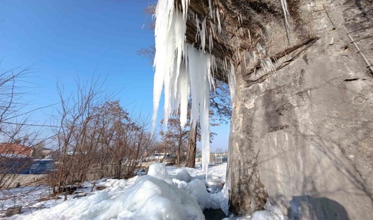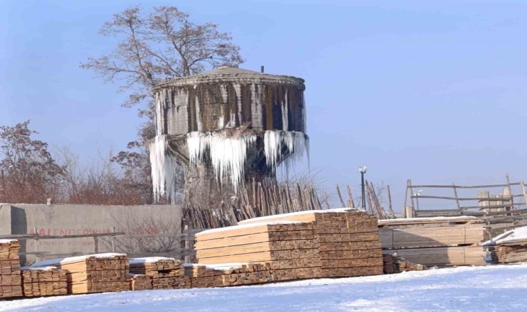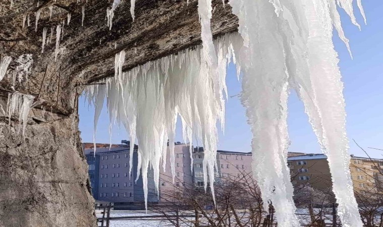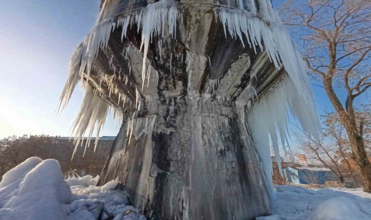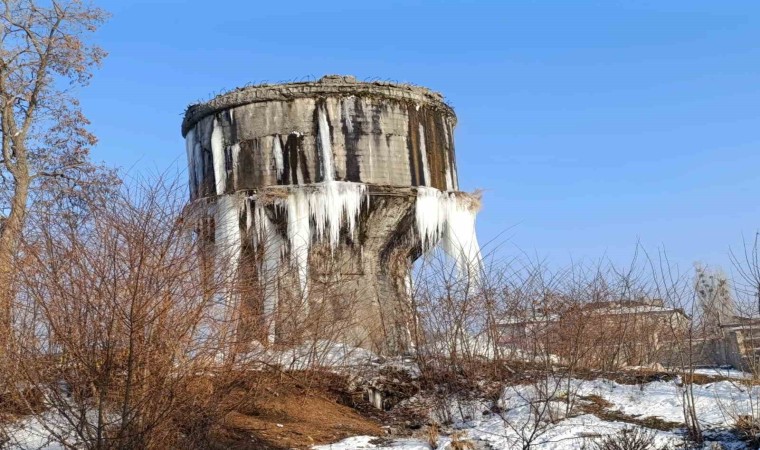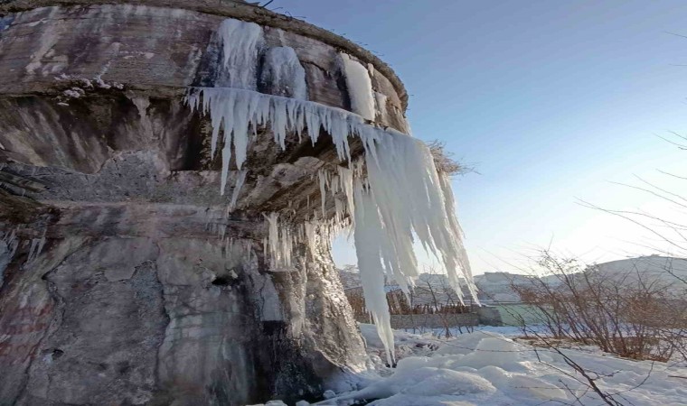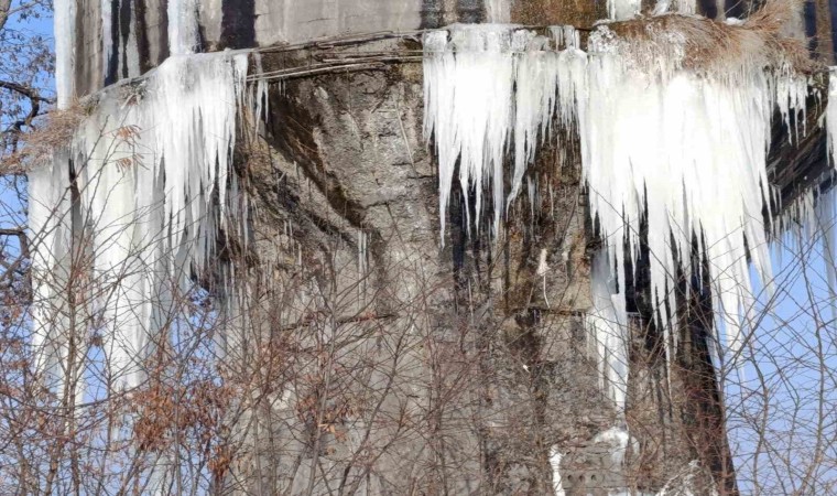 Gece saatlerinde hava sıcaklığının sıfırın altında 19 dereceye kadar düştüğü kentte, 20 metre yüksekliğindeki su deposunda metrelerce uzunlukta buz sarkıtları oluştu. Yaklaşık 15 metre uzunluğa ulaşan buz sarkıtları, kartpostallık manzaralar ortaya çıkardı.