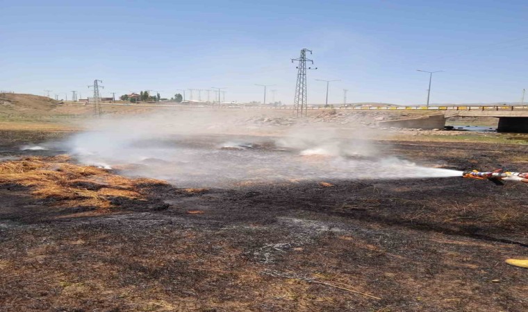 Ağrı’da bir köyde bulunan 3 dönümlük tarla küle döndü.