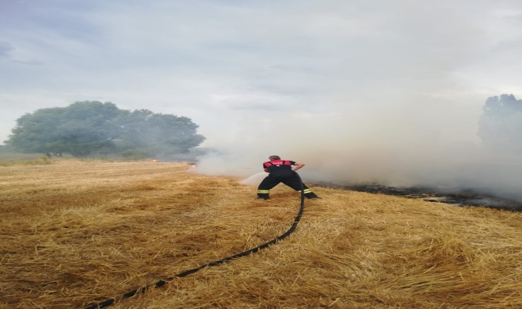 Ağrı’da bir köyde bulunan tarlada çıkan yangında tarla küle döndü.