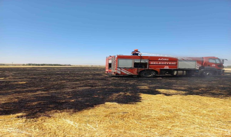 Ağrı’da çıkan yangında bir tarla küle döndü.