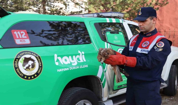 Ağrı’da jandarma ekipleri tarafından yaralı halde bulunan şahin tedavi altına alındı.