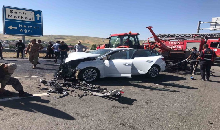 Edinilen bilgilere göre, Tutak’tan Ağrı’ya doğru seyir halinde olan M.V.B kontrolündeki 06 AB 4638 plakalı otomobil ile Kulecik kavşağında seyir halinde olan F.D.Ö kontrolündeki 04 AAC 289 plakalı traktörün