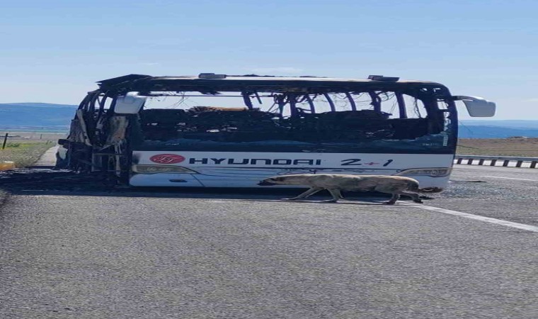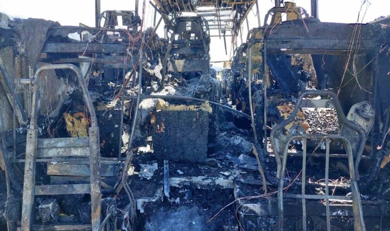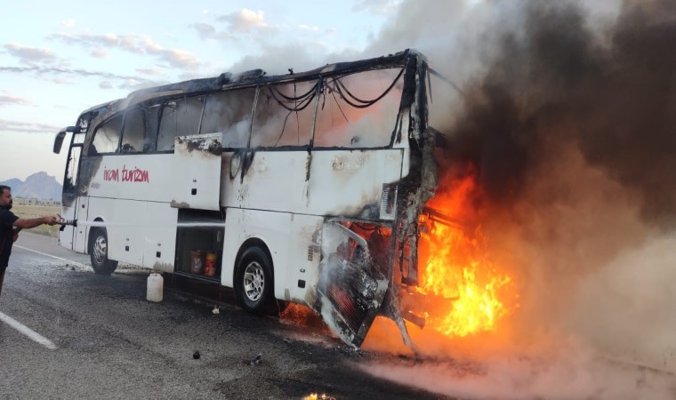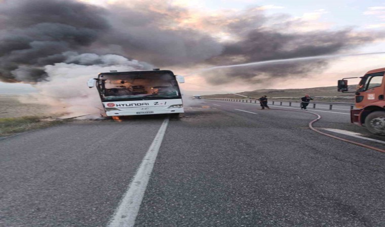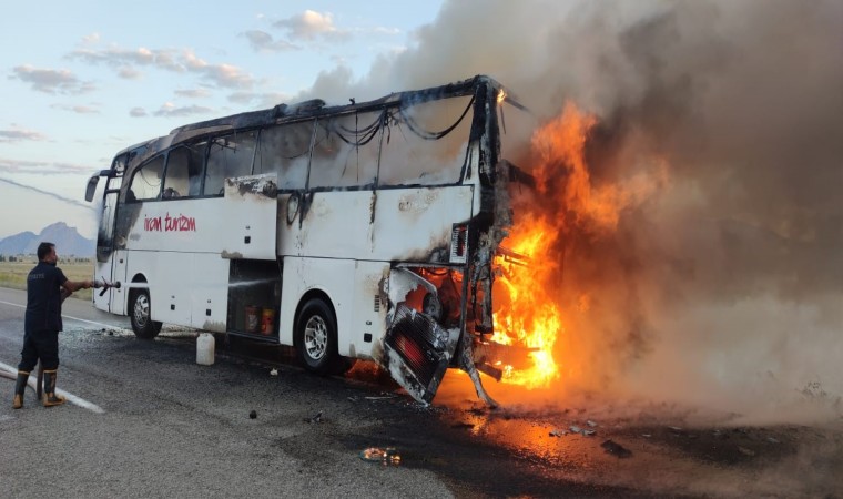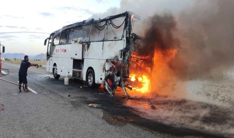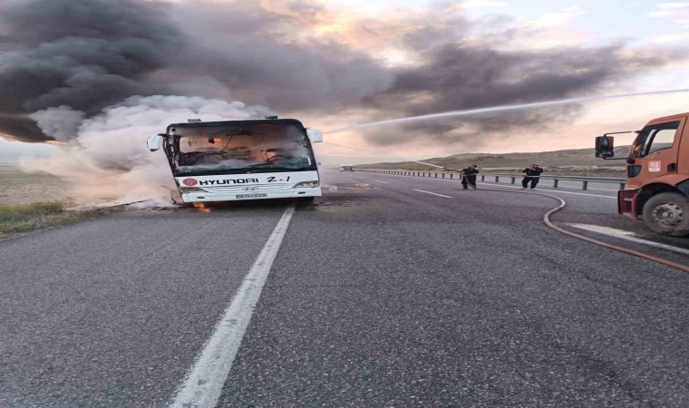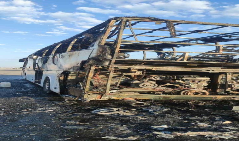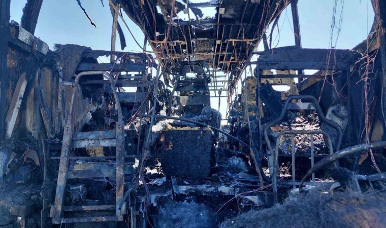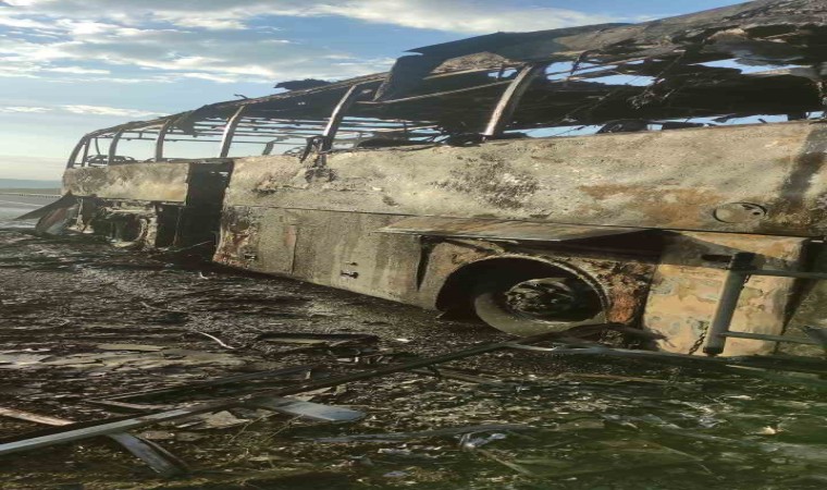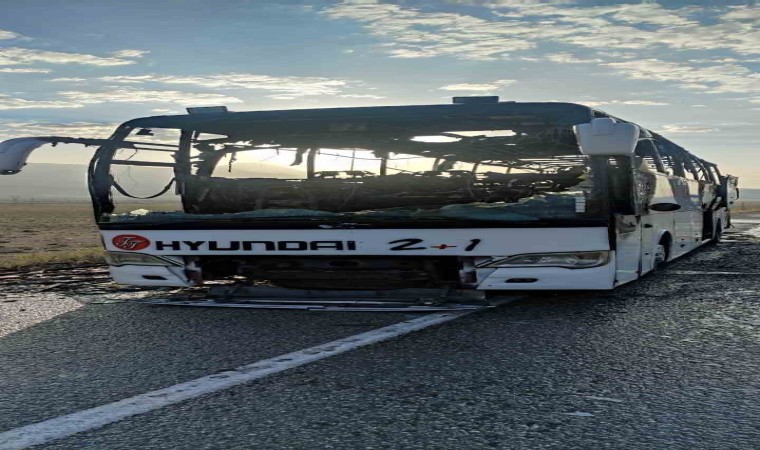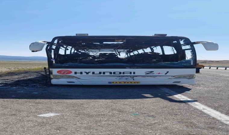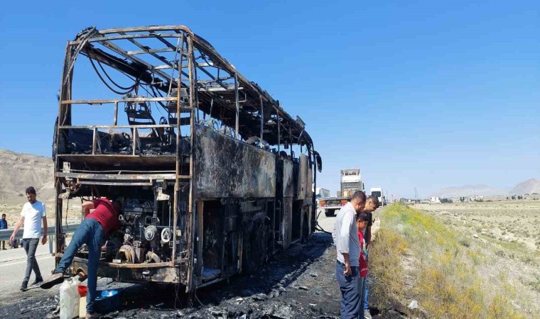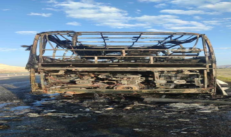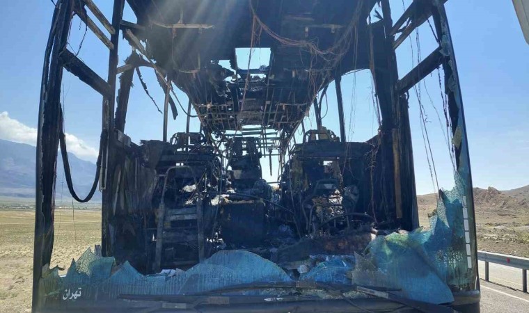 Ağrı’nın Doğubayazıt ilçesinde İran plakalı yolcu otobüsü alev aldı. Motor kısmında başlayan yangını fark eden sürücünün yolcuları indirdiği olayda otobüsten geriye enkaz yığını kaldı.