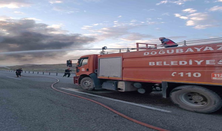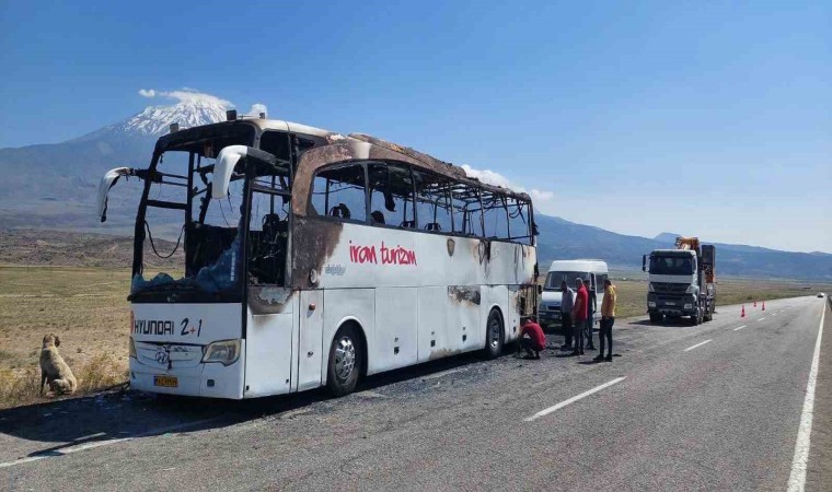 Olay, saat 16.00 sıralarında Doğubayazıt ilçesine bağlı Topçatan köyü yakınlarında meydana geldi. İran’dan aldığı yolcularla yola çıkan Jafarsadegh Kargar Touji (52) yönetimindeki 97 AA 629 İran plakalı otobüs, Gürbulak Sınır Kapısı’ndan geçtikten sonra seyir halindeyken motor kısmında yangın çıktı. Sürücünün otobüsü yolun sağına çekerek yolcuları indirmesinden sonra yangını söndürmek için müdahale etti. İhbar üzerine olay yerine gelen Doğubayazıt Belediyesi itfaiye ekipleri yangını söndürdü. Kısa sürede enkaz yığınına dönen otobüsün sürücüsü Touji elinden yaralandı. Yaralı sürücünün tedavisi Doğubayazıt Devlet Hastanesi’nde yapıldı. Başka yaralının olmadığı yangınla ilgili soruşturma başlatıldı.