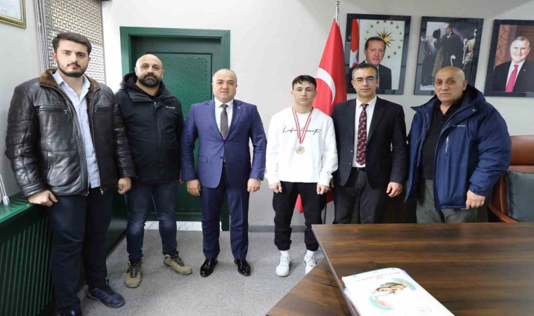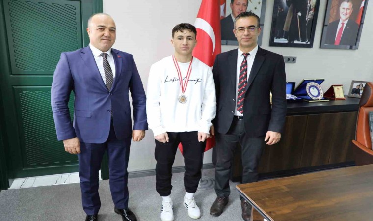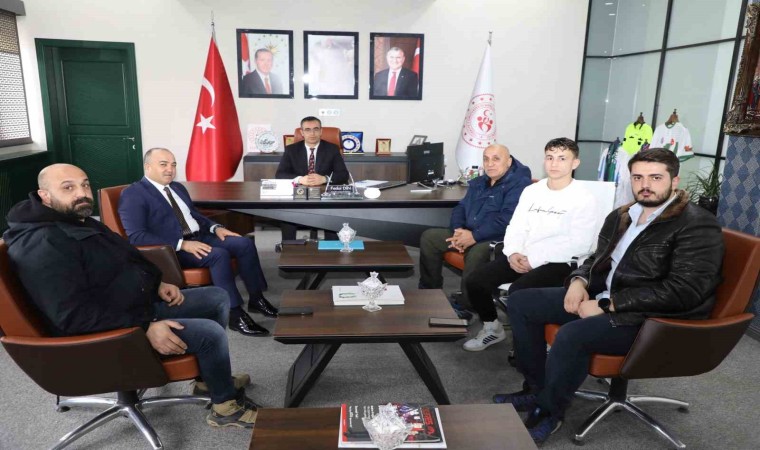 Ağrı Gençlik ve Spor İl Müdürü Fedai Din, Mersin’de düzenlenen Naci Oral Genç Erkekler ve Kadınlar Türkiye Ferdi Boks Şampiyonası’nda 57 kiloda Türkiye ikincisi olan Ağrılı boksör Mir Boran Yıldırım’ı makamında ağırladı.