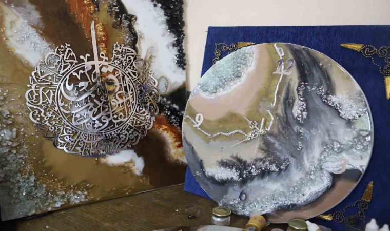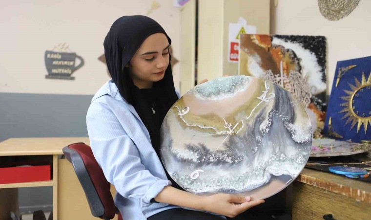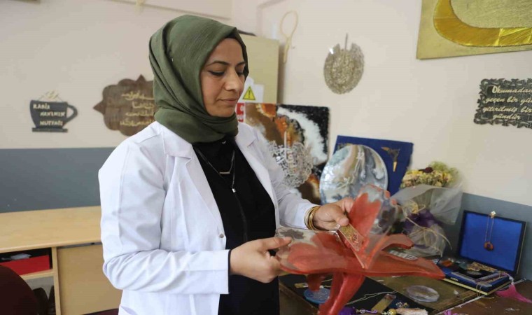 Ağrı Halk Eğitimi Merkezi tarafından açılan epoksi kursunda kadınlar, yaptıkları çeşitli tasarımlarla hem sanat öğreniyor, hem de aile bütçelerine katkıda bulunuyorlar.