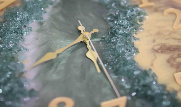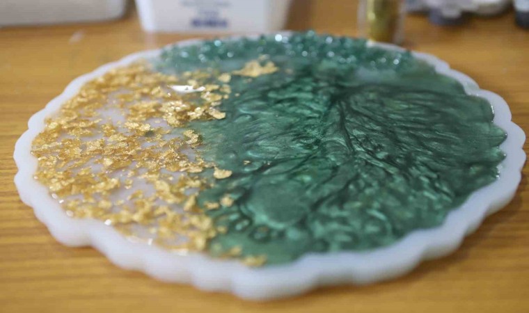 Amaçlarının ev hanımlarının sosyal hayatlarına destek vermek olduğunu belirten Epoksi sanatı usta öğretici Ülküye Gengörü, “Şu anki modülüm epoksi ve reçine üzerine, objeler yapılıyor, tablolar, saatler yapılıyor. Hanımlara yönelik ve meslek edinme kursu, bu kursa gelen arkadaşlar hem meslek ediniyor, çok güzel kazançlar sağlanıyor. Yaptığımız epoksi malzemeleri de epoksi, renkli boyalar, doğadan aldığımız bazı çiçekler, onları kullanıyoruz. Aynı zamanda cam kırıkları kullanıyoruz doğal cam kırıkları bunlar, sanayiden getiriyoruz çünkü bunları piyasadan almak son derece pahalı, pahalı olduğu için bizde sanayide arabaların veya vitrin camları kırıldığı zaman bunları geri dönüşüm olarak tekrardan biz buraya getirip değerlendirip objelerde veya saat, panolarda kullanıyoruz. Yani maliyeti en aza indirmeye çalışıyoruz. Bayanlar bu işi çok severek yapıyor, potansiyeli çok yüksek, aynı zamanda çok güzel kazançlar elde ediyorlar çünkü yapımı çok kolay, dediğim gibi doğal taşlar kullanılıyor yada doğadan toplanan çiçekler kullanılıyor” ifadelerini kullandı.