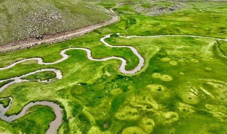 Ağrı Taşlıçay ilçesine bağlı Sinek Yaylası’nda volkanik platolar üzerindeki menderesler, otlanan küçükbaş hayvanlar ve yemyeşil doğasıyla muhteşem manzaralar sunuyor.