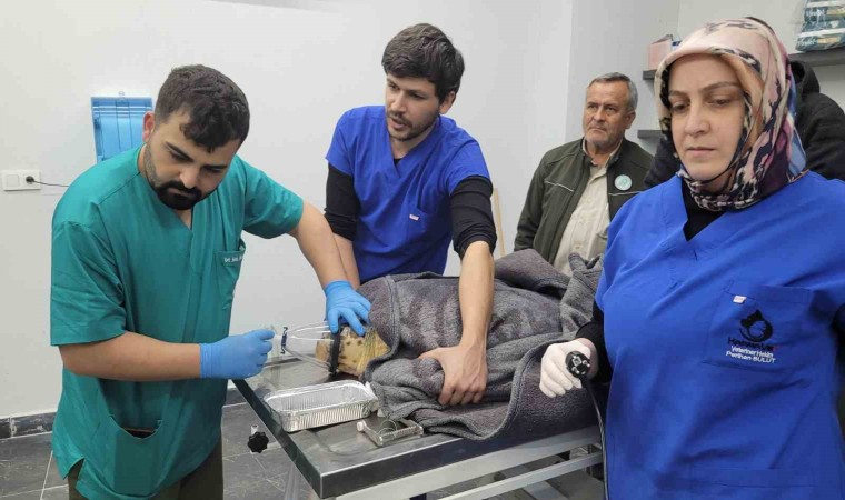 Yapılan ilk kontroller sonucunda ağız içinden kan geldiği görülen ve olta kancası yüzünden ağız bölgesi parçalandığı anlaşılan caretta caretta, Doğa Koruma ve Milli Parklar (DKMP) ekiplerinin desteğiyle veteriner kliniğine ulaştırıldı. Klinikte kafa röntgeni çekilen ve ilk müdahalesi yapıldıktan sonra ağzında yoğun kanamaya sebep olan kesik ve yaralı yerler, lokal anestezi yöntemiyle uyuşturularak 2,5 saatlik operasyonun ardından tedavi edildi.