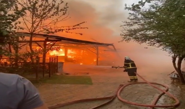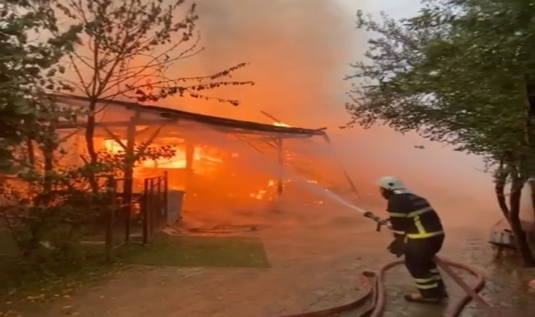 Düzce’de yangının çıktığı ahır kullanılamaz hale geldi.