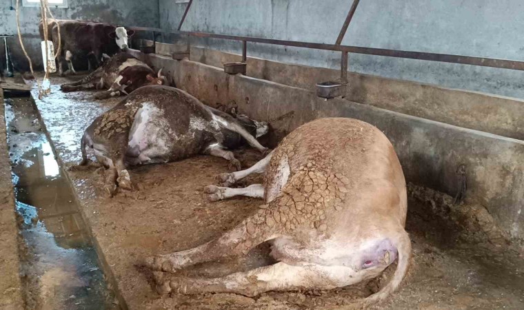 Şanlıurfa’nın Siverek ilçesinde bir ahıra şimşek isabet etti, ahırda bulunan 3 büyükbaş hayvan telef oldu.