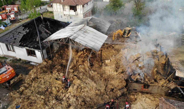 Ekipler, yangını uzun uğraşları neticesinde kontrol altına alarak söndürdü. Yangında evin çatısında ağır hasar oluşurken samanlık kül oldu. Soğutma çalışmalarının devam ettiği yangına ise 8 itfaiye aracı ve 20 itfaiye eri ile belediyelerin iş makineleriyle müdahale edildi. Hususa ilişkin başlatılan inceleme devam ediyor.