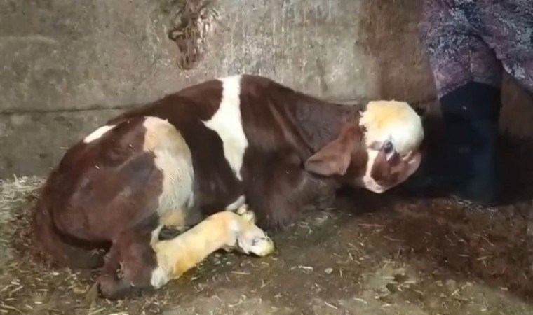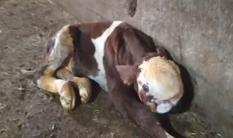 Yozgat’ın Çekerek ilçesine bağlı Beyyurdu köyünde yaşayan Mehmet Polat, doğumu yaklaşan ineğini sık sık kontrol etmeye başladı. Gelen sesler üzerine ahıra koşan Polat, doğan buzağıyı görünce şaşırdı. Buzağının kafa yapısının normalden çok farklı olduğunu gören besici, o anları kayda aldı. Polat, çene yapısı oluşmayan ve kafatası kemiği bulunmayan buzağıyı görür görmez veterineri aradı.