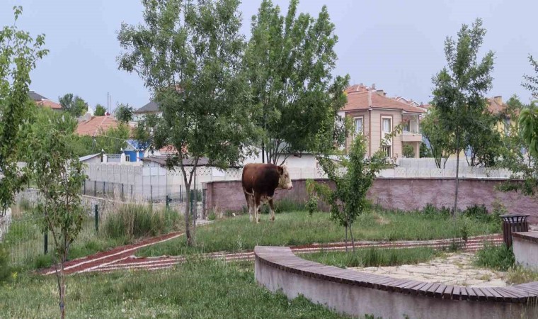 Çorum’un Alaca ilçesinde ahırdan kaçan kurbanlık ortalığı birbirine kattı.