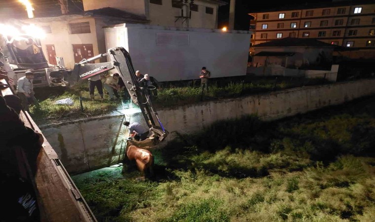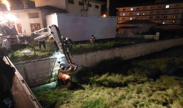 Edinilen bilgiye göre, Denizhan Mahallesi’nde bir ahırda bulunan kurbanlık sahibinin elinden kaçtı. Kendisini durdurmak isteyen kurbanlık daha sonra TOKİ konutlarının bulunduğu bahçeye girdi. Buradan da kaçan hırçın boğa Alaca deresine atladı. Derenin içinde mahsur kalan boğanın kurtarılması için sahipleri itfaiyeden yardım istedi. İhbar üzerine belirtilen adrese itfaiye ekipleri yönlendirildi. İğne ile uyuşturulan boğa daha sonra itfaiye ekipleri tarafından dereden kurtarılarak sahiplerine teslim edildi.