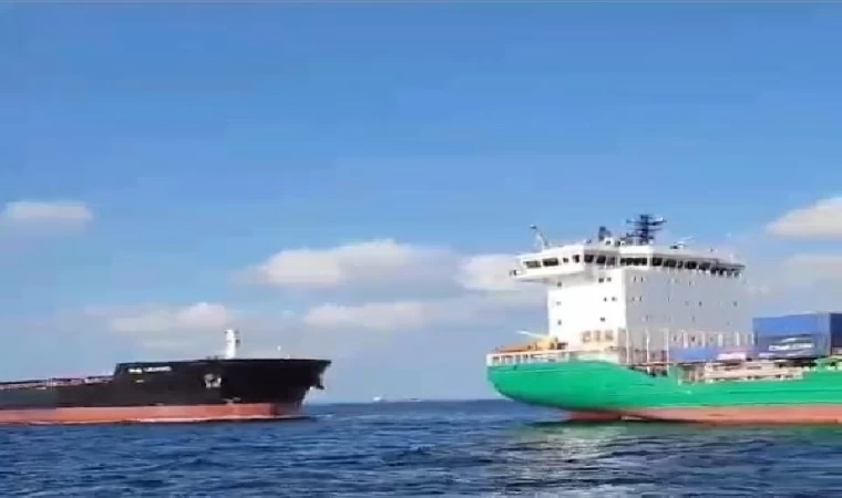 Marmara Denizi Ahırkapı açıklarında dün sabah saatlerinde kuru yük gemisi konteyner gemisiyle çarpıştı. Ölen ya da yaralananın olmadığı kaza anının görüntüleri ortaya çıktı. Görüntülerde 228 metre uzunluğundaki ‘New Legent’ isimli kuru yük gemisi 141 metre uzunluğundaki ‘Elbsun’ isimli demirli duran konteyner gemisinin arka kısmında yaklaşarak çarpma anı bir vatandaşın cep telefonuna kamerasına yansıdı. Kuru yük gemisinin çarpmasından sonra konteyner gemisinin ileriye doğru sürüklendiği de görülüyor. (DHA)