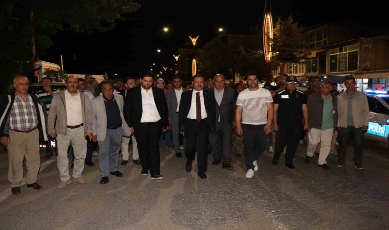 Dev Türk bayrağı ile yürüyen kalabalık sık sık ‘Şehitler Ölmez Vatan Bölünmez’ sloganları attı. Yürüyüşün ardından ilçenin yukarı çarşı meydanında devam eden program saygı duruşu ve İstiklal Marşı’nın okunmasıyla başladı. Daha sonra bir konuşma yapan Ahlat Kaymakamı Batuhan Bingöl, “15 Temmuz, vatanımızın bölünmez bütünlüğünün, milletimizin azim ve kararlılığının, milli birlik ve beraberliğinin bütün dünyaya bir kez daha gösterildiği tarihi bir gün, dünya toplumlarına ve devletlerine ders veren bir destandır. Fethullahçı terör örgütü tarafından yapılan hain darbe girişimi karsısında halkımız sokaklara, meydanlara inerek, havalimanlarını doldurarak namluların, tankların, helikopterlerin, uçakların karsısına dikilerek bu menfur girişimi engellemiştir. O gece bu kahraman millet, büyük bir işgal girişimini engellemiş; kutsal vatan toprağını haçlı işgaline terk etmek isteyenlere bir kez daha tarihi bir ders vermiştir. Cumhurbaşkanımız Recep Tayyip Erdoğan’ın bir işaretiyle yüzbinler, milyonlar meydanlara inmiş ve Türk Milleti iradesini ortaya koymuş, liderinin yanında adeta devleşmiştir” dedi.
