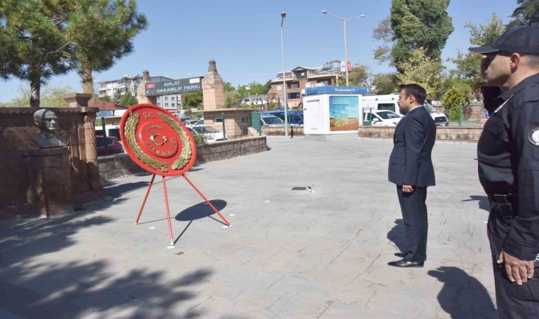 Ahlat Kaymakamlığı önündeki Atatürk heykeline çelenklerin sunulmasıyla başlayan program, saygı duruşu ve İstiklal Marşı’nın okunmasıyla devam etti. Daha sonra günün anlam ve önemini belirten konuşmayı Jandarma Astsubay Kıdemli Çavuş Funda Özkol yaptı. Öğrenciler tarafından okunan şiirlerin ardından program Ahlat Kaymakamı Batuhan Bingöl’ün gaziler ve şehit ailelerini makamında ağırlamasıyla son buldu.
