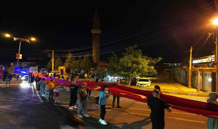 Bitlis’in Ahlat ilçesinde, Malazgirt Zaferi’nin 952. yıl dönümü etkinlikleri çerçevesinde 200 metre uzunluğundaki Türk bayrağıyla "Fener Alayı" yürüyüşü yapıldı.