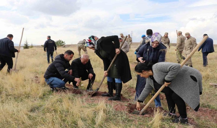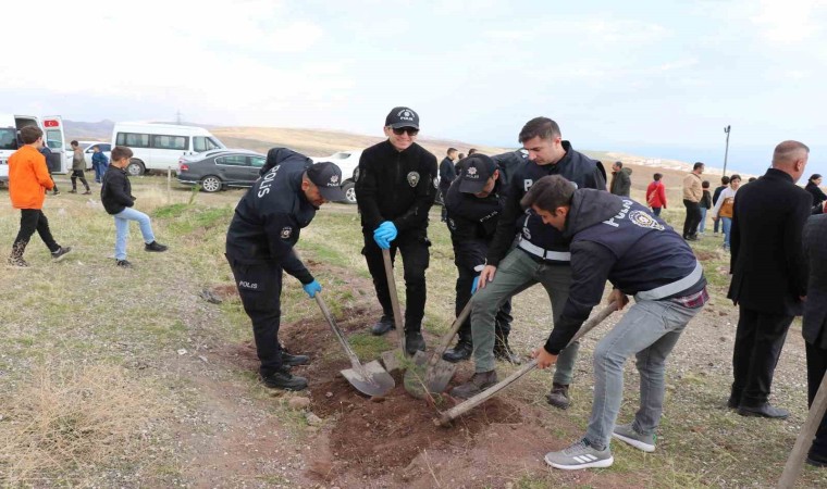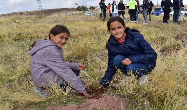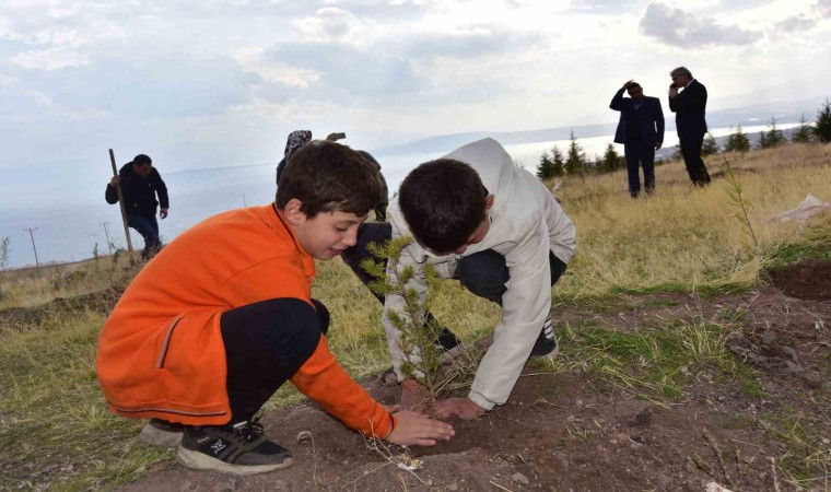Bitlis’in Ahlat ilçesinde 11 Kasım Milli Ağaçlandırma Günü çerçevesinde çam fidanları toprakla buluşturuldu.