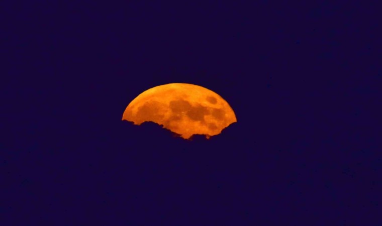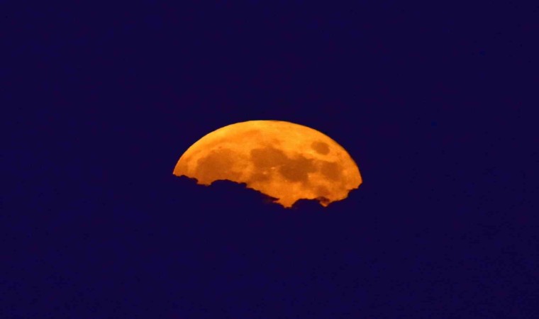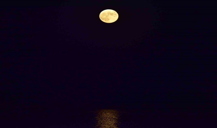 Bitlis’te Van Gölü üzerinde yükselen dolunay görsel şölen oluşturdu. Bulutların arasından kızıl renge bürünerek çıkan dolunayın oluşturduğu yakamoz da hayran bıraktı.