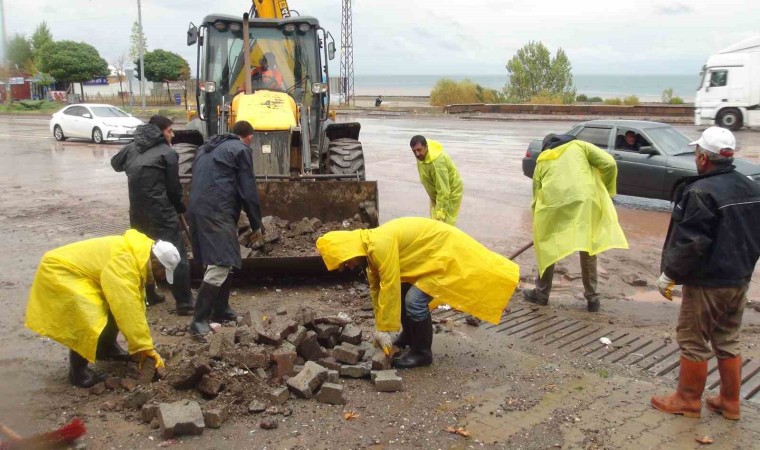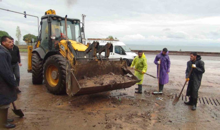 Mehmet Ali Akpolat isimli esnaf ise, “Sabah geldiğimizde müthiş bir yağmur yağıyordu. İş yerimizi açtığımızda 15-20 santim su vardı içeride. Her taraf su ve çamur dolmuştu. Sabah 8’den bu yana uğraşıyoruz” diye konuştu.