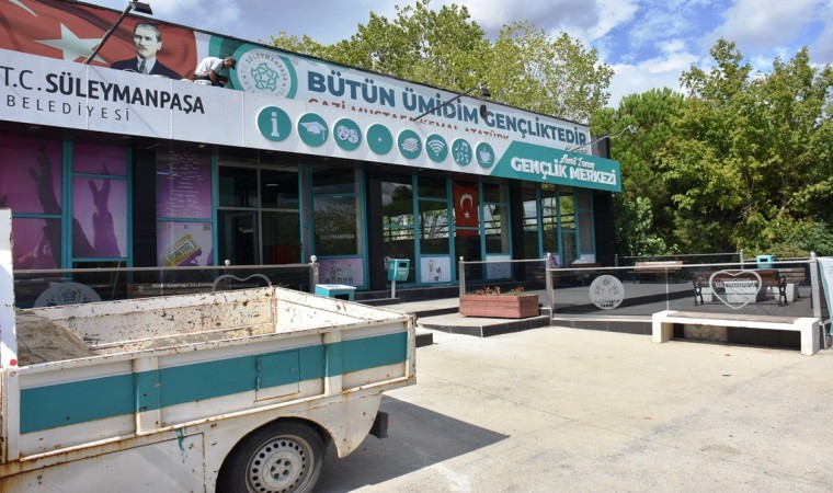 Birkaç gün önce başlayan çalışmalar kapsamında Süleymanpaşa Belediyesi Ahmet Erensoy Gençlik Merkezi’nde çatı onarımı, boya badana işlemleri, teknik ekipmanların bakımı, çevre düzenlemesi ve iç dekorasyon çalışmaları yapılmaya başlandı.