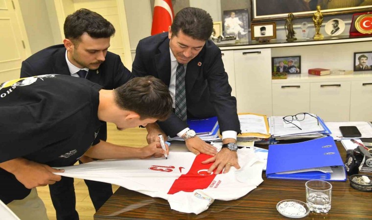 A Milli futbolcu Ahmetcan Kaplan, Euro 2024 son 16 turunda oynanan Avusturya maçında giydiği formayı imzalayarak Ortahisar Belediye Başkanı Ahmet Kaya’ya hediye etti.