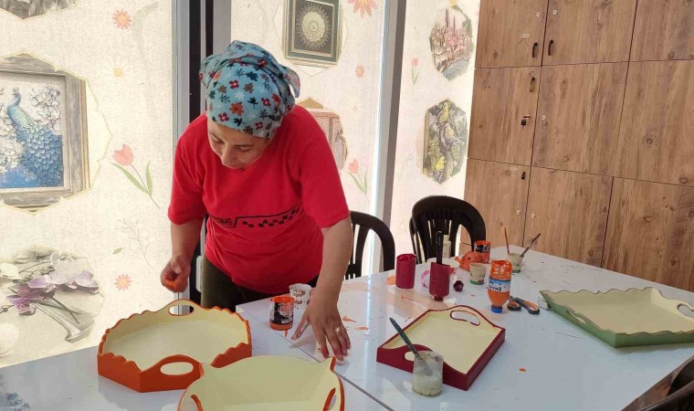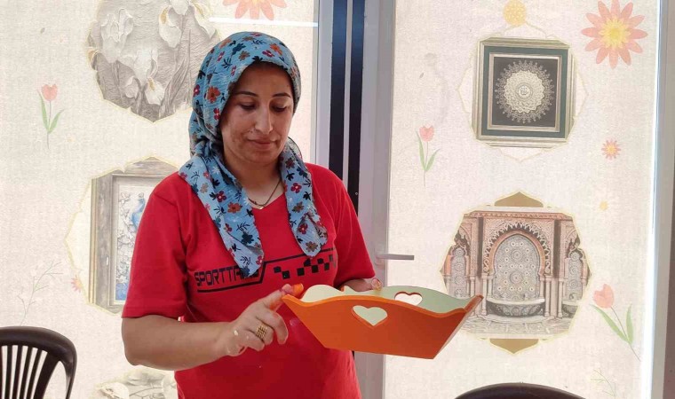 Kahramanmaraş’ta bir kadın ahşap boyama yaparak müşterilerin beğenisine sunuyor.