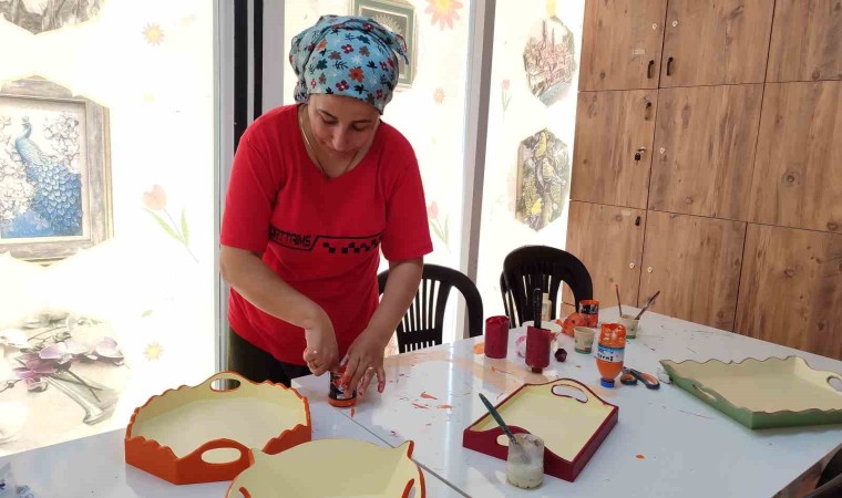 Türkoğlu ilçesi Lojistik Merkezinde ahşapları boyama yaparak müşterilerin beğenisine sunan 33 yaşındaki Zeliha Şeker,"Ürünleri boyayarak hem para kazanıyorum, hem kendimi geliştiriyorum, hem de huzur buluyorum" dedi.