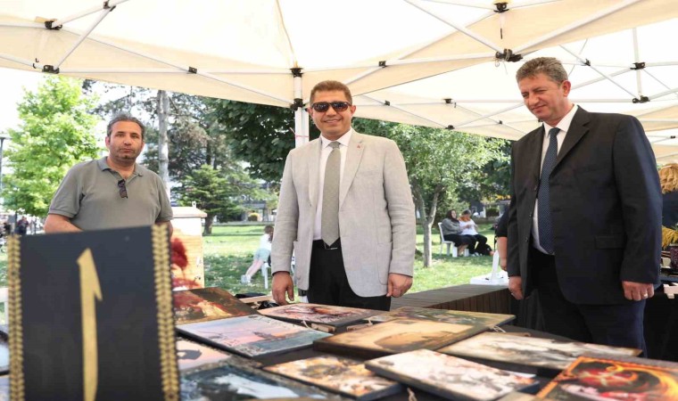 Düzce’de el sanatları eğitim merkezi müdürlüğünde yapılan ahşap hediyelikler Anıtpark meydanında sergilenmeye başladı.