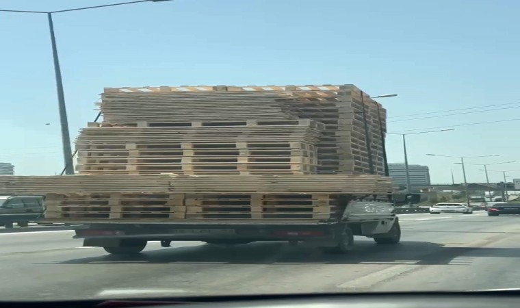 Diğer bir görüntü merkez Osmangazi ilçesi Soğukkuyu Mahallesi’nde meydana geldi. Mudanya Bulvarı üzerinde seyir halinde olan kamyonet, kasasında kapasitesinden fazla palet taşıdı. Trafikteki diğer sürücüler bu duruma tepki gösterirken kamyon sürücüsü aldırış etmeden yoluna devam etti.