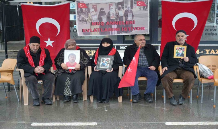 Muş’ta çocuklarının terör örgütü PKK tarafından kandırılarak dağa kaçırılmasından HDP’yi sorumlu tutan annelerin eylemi bu hafta da devam etti. Ellerinde çocuklarının fotoğrafıyla bekleyişini sürdüren anneler, evlatlarına teslim olmaları çağrısında bulunarak kararlı bekleyişlerini sürdürüyor.