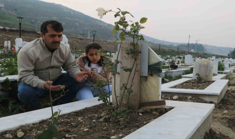 Depremin vurduğu Hatay’da vatandaşlar, yılbaşı öncesi asrın felaketinde hayatını kaybeden yakınlarının mezarlarını ziyaret ettiler. Ailesinden geriye kalan kızı Elmas’la birlikte evlatlarının ve eşinin mezarını ziyaret eden Mehmet Yılmaz ise yürekleri burktu.