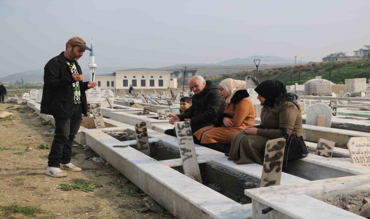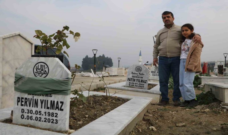 Asrın felaketinde eşi, 2 oğlu ve kardeşi vefat eden Mehmet Yılmaz, hayatta kalan kızı Elmas’la birlikte ailesinin mezarlarını ziyaret etti. 2023 yılını unutmayacağını dile getiren Yılmaz, “Ben; eşimi, 2 oğlumu, annem, kardeşim, abim ve çok sevdiğim komşumu depremde kaybettim. Birinci derece olarak 5 yakınımı depremde kaybettim. Ailemden geriye kızım ve ben kaldık. Babam ve kardeşlerimde sağ salim hayattalar. Ben depremde vefat eden ailemi ziyarete geldim. Onlarda olmuş olsa daha mutlu olacaktı, demek ki kaderleri böyleymiş. 2023’ü hiç unutmayacağız. Unutulmayacak. İçimizde yaşıyoruz her şeyi, kalbimize gömdük” ifadelerini kullandı.