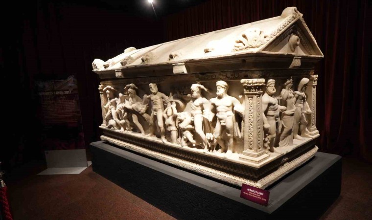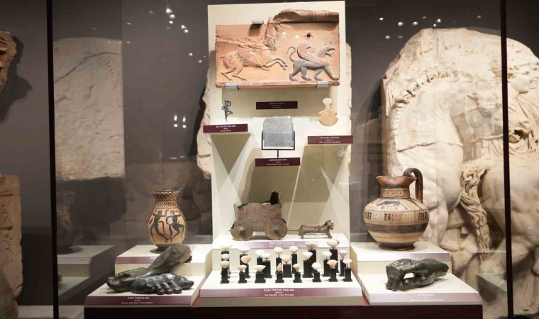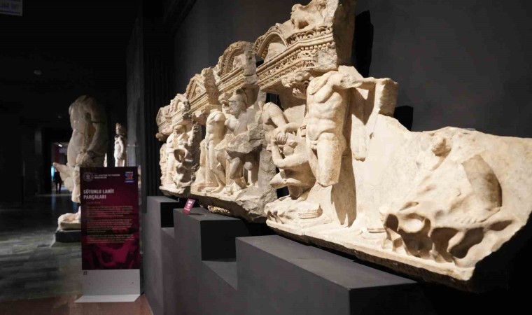 “Bütünün Parçaları: Tetrarkh Heykel Başları” eseriyle başlayan sergide, toplam 22 eser yer alıyor. Teatrarkh Heykel Başları, “Antalya’daki Perge Antik Kenti, yalnızca zengin bir tarih değil, aynı zamanda karanlık bir talan hikayesiyle de yüzleşti. 1970’li yıllardan itibaren kaçak kazılarla yağmalanan bu kadim kent, Türkiye’nin ilk kadın arkeoloğu Prof. Dr. Jale İnan’ın önderliğinde kararlı bir mücadeleye sahne oldu. Ancak kaçırılan eserlerimizden biri olan Tetrarkh heykel başlarının, yıllar sonra heyecan verici hikayesi, bilim ve uluslararası işbirliğinin zaferini simgeliyor. Tetrarkh, Roma İmparatorluğu’nda dört imparator tarafından yönetilen dönemi temsil eden yöneticilere verilen isimdir. 2020 yılında yayınlanan bir makale, New York’taki Metropolitan Müzesi’nde sergilenen bu heykel başlarının, Perge Tiyatrosu’ndaki başsız imparator heykellerine ait olabileceğini ortaya koydu. Türk ve Alman bilim insanlarının titiz çalışmaları ve arşiv incelemeleri, bu başların Perge’den kaçırıldığını kesinleştirdi. Manhattan Bölge Savcılığı’nın hızlı müdahalesiyle eserlere el konuldu ve başlar yıllar sonra 2023 yılında ait oldukları gövdelerle Antalya’da birleştirildi. Bu birleşme, tarihin talanını geri döndürmek için verilen kararlı mücadelenin bir sembolüdür” şeklinde öykülendirildi.