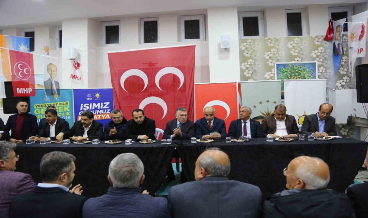 Konak Mahallesi’ndeki toplantıya AK Parti Grup Başkanı ve Sivas Milletvekili Abdullah Güler, Sivas Milletvekili Hakan Aksu, Malatya Milletvekilleri Abdurrahman Babacan ve İhsan Koca, MHP MYK Üyesi Eyüp Gönültaş, MHP Malatya İl Başkanı Gökhan Gök, AK Parti Büyükşehir Belediye Başkan Adayı Sami Er ve Yeşilyurt Belediye Başkan Adayı Prof. Dr. İlhan Geçit katıldı.
