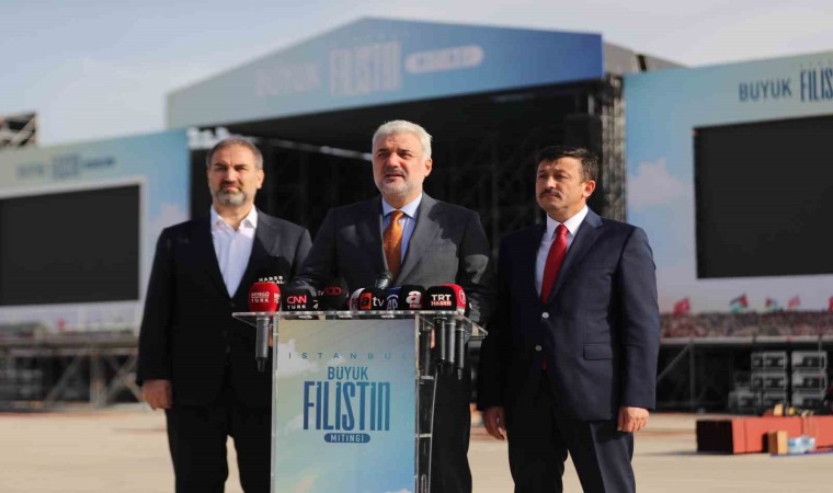 Büyük Filistin Mitingi yarın Cumhurbaşkanı Recep Tayyip Erdoğan’ın katılımıyla gerçekleştirilecek. Miting öncesi AK Parti Genel Başkan Yardımcısı Hamza Dağ ve AK Parti İstanbul İl Başkanı Osman Nuri Kabaktepe, açıklamalarda bulundu. Dağ, yaptığı konuşmasında gerçekleştirilecek mitinge İstanbulluları davet ederken Filistin’deki vatandaşların da yalnız olmadığına vurgu yaptı.