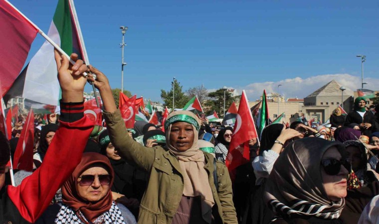 İsrail’in saldırılarında hayatını kaybedenler için İl Müftüsü Yusuf Akkuş tarafından gıyabi cenaze namazı kıldırılırken, miting Filistin için Hunat Camii’nden sela verilip, dua edilmesinin ardından sona erdi.