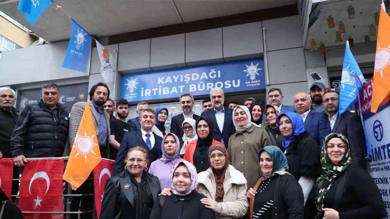 AK PARTİ İSTANBUL İL BAŞKANI KABAKTEPE İLE AK PARTİ MİLLETVEKİLİ ADAYI EMİNMOLLAOĞLU, KAYIŞDAĞI İRTİBAT BÜROSU AÇILIŞINA KATILDI