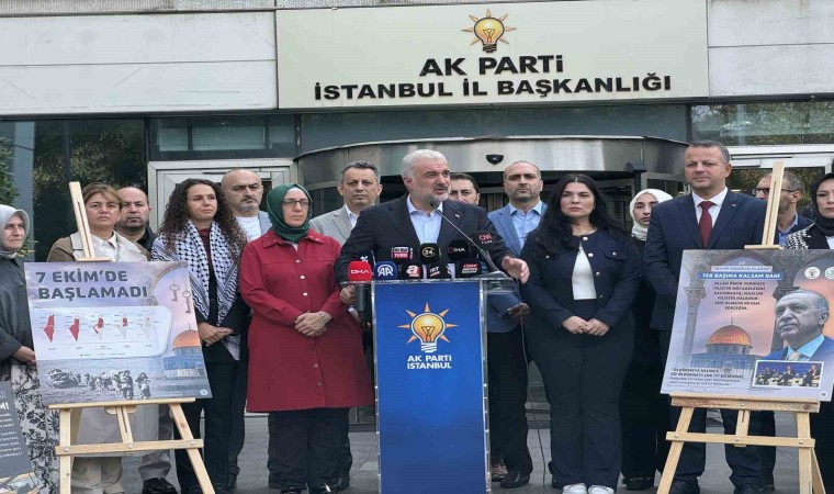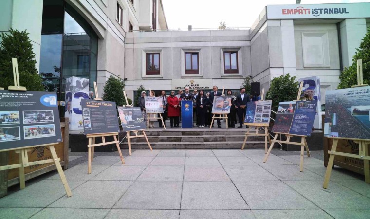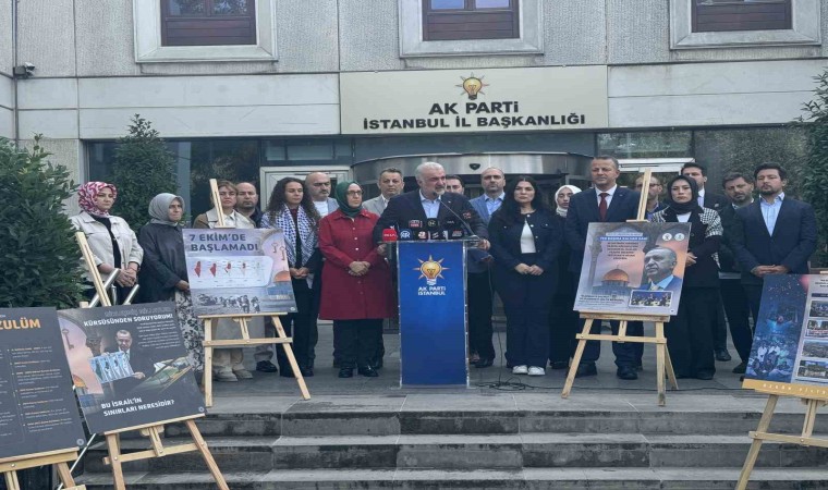 İsrail’in başta Gazze olmak üzere gerçekleştirdiği İnsan hakları ihlallerinin ve katliamlarının unutulmamasını sağlamak ve katledilen masumları anmak için düzenlenen basın açıklamasında konuşan AK Parti İstanbul İl Başkanı Osman Nuri Kabaktepe, “Bugün İsrail’in Filistin’e hatta tüm Ortadoğu’ya, tüm insanlığa yönelik başlattığı soykırımın üzerinden 1 yıl geçti ve yıl dönümü ifadesini kullanmak insana zor geliyor. Çoğu zaman mutluluk ve huzurlu şeyler için kullandığımız bir söylem ama maalesef soykırımın, vahşetin bir yıl dönüldüğü günleri yaşıyoruz. Hüzünlüyüz” dedi.