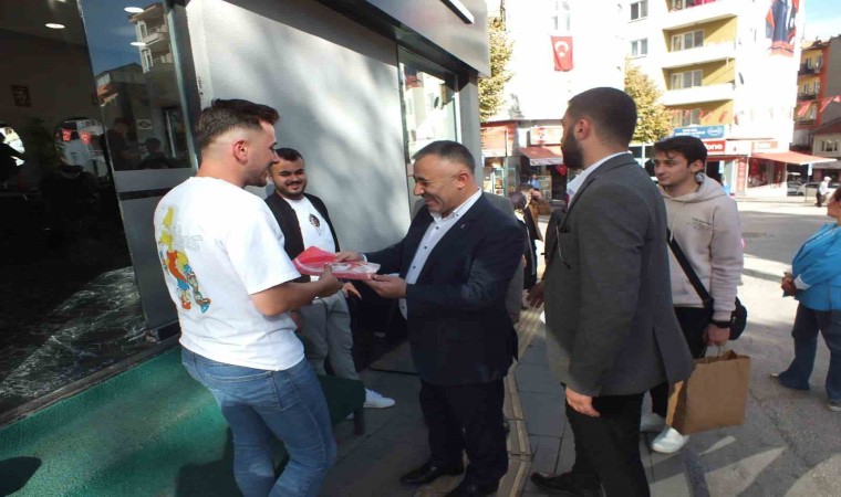 Bilecik AK Parti İl Başkanı Serkan Yıldırım esnafları ziyaret ederek bayrak dağıttı.