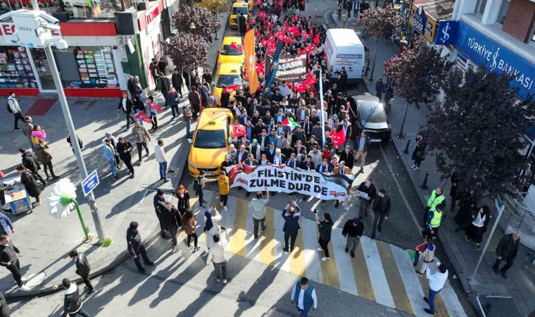 Ellerindeki dövizler ve Türk bayrakları ile İsrail Zulmüne tepki gösteren gençler sık sık sloganlarda Filistin’de yaşanan soykırıma tepki gösterdiler.
