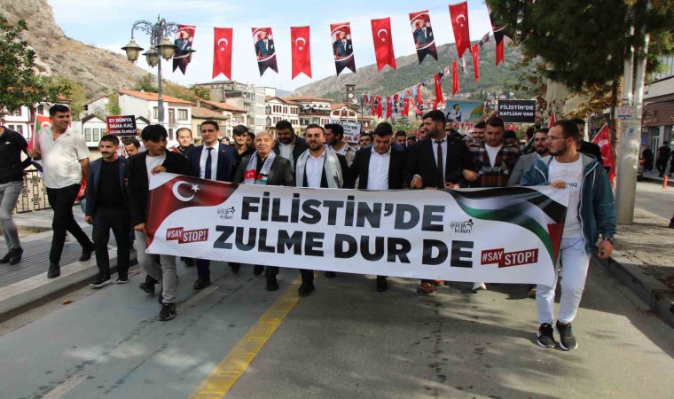 İsrail’e tepki sloganlarının atıldığı yürüyüşe, AK Parti Amasya İl Başkanı Ekrem Toto da katıldı.