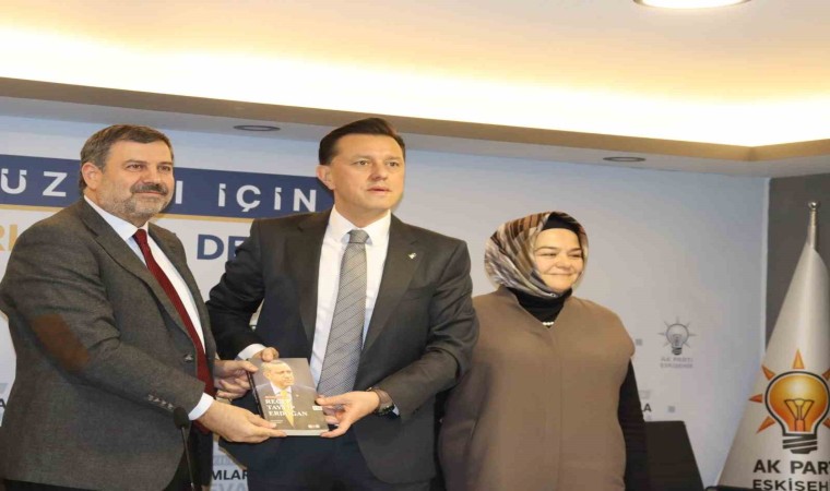 AK Parti İl Başkanı Süleyman Reyhan, Hatipoğlu’na Cumhurbaşkanı Recep Tayyip Erdoğan’ın ‘Daha Adil Bir Dünya Mümkün’ adlı kitabını hediye etti.